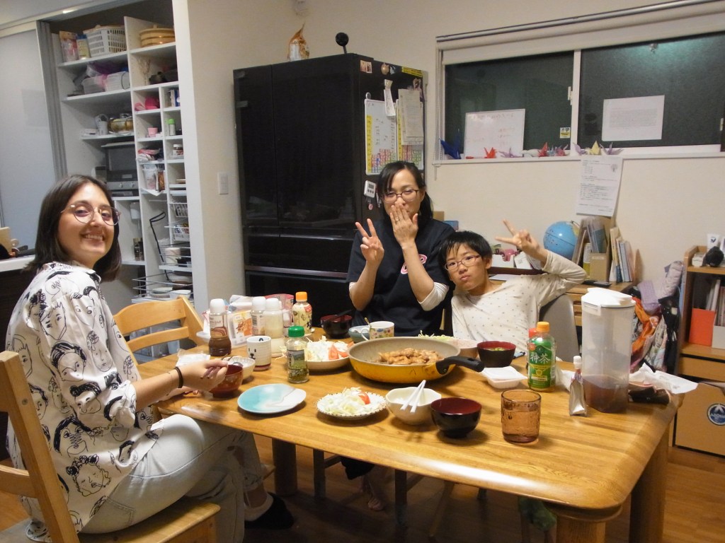 1. Es ist echt toll, dass du in einer so netten Familie gelandet bist. Sie wirken sehr sympathisch und die beiden Damen haben sich ja ganz fein gemacht mit ihren Kimonos. Ländlich ist doch auch gut, dann hast du nicht so viel Stress – oder?