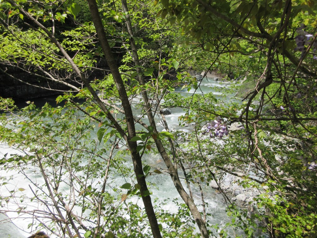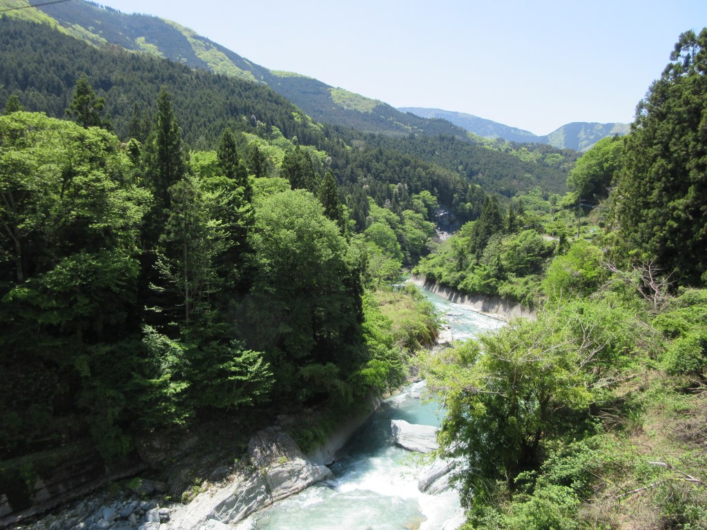 Das spektakuläre Iya-Tal ist ein besonderer Ort. Tiefe Schluchten und dichte Bergwälder. Nicht einmal Tarzan käme da durch. Ich wunderte mich noch, dass es auf einmal Reisecars auf der Strasse hatte. Komisch, gehen sicher nicht alle ins Puppental. So berühmt ist das nun auch wieder nicht. Nishi-Iya ist das besser zugängliche Ende des Iya-Tals. (GPS hatte recht) Das Ziel ist ein riesiger Parkplatz an der kleinen Lianenbrücke. Die Hängebrücke aus Schlingpflanzen sind wunderbare Überbleibsel eines entlegenen und zeitlosen Japans. Viele Touristen die diese Brücke sehen wollen. Sehr berühmt. Fahren nach Besichtigung und über die Brücke schwanken auch gleich wieder weiter. Man kann über die Brücke gehen. Die Holzpanelen stehen sehr weit auseinander für meine Begriffe. Eine sehr tiefe Schlucht.
