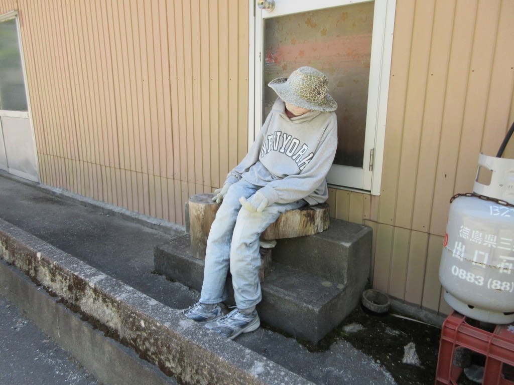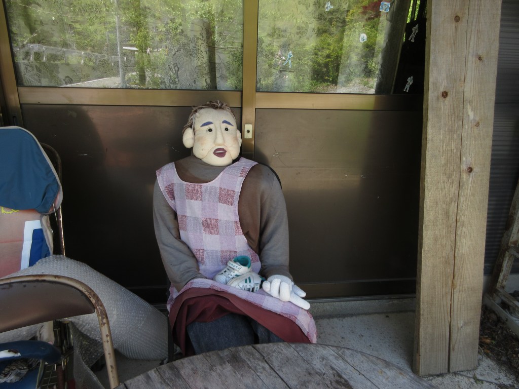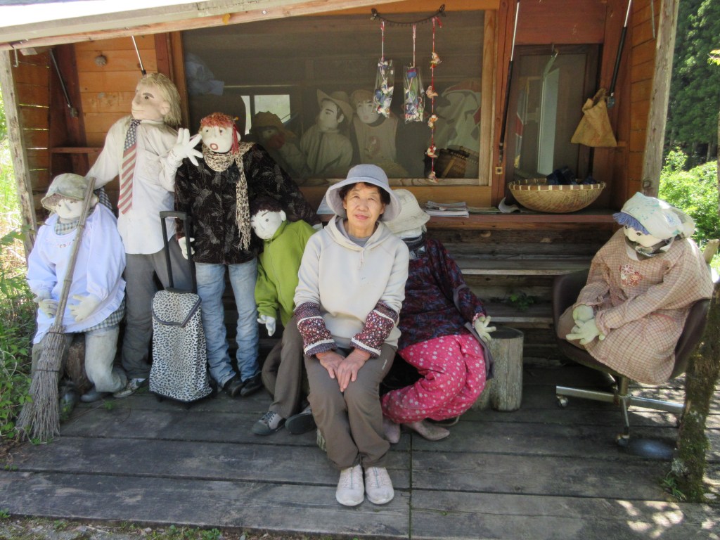 Mit der Puppenmacherin Tsukimi Ayano. Sie hat über 350 Puppen gefertigt. Die Kleider bekommt sie geschenkt. Man kann bei ihr auch einen Nagoro scarecrow Kurs besuchen.