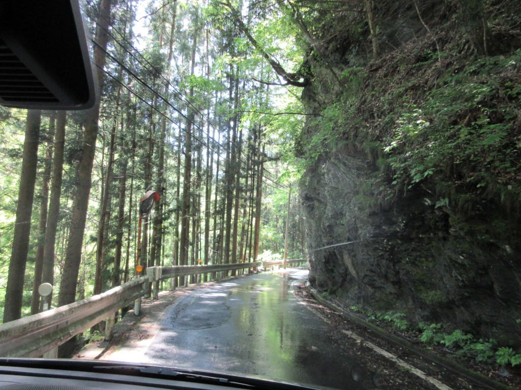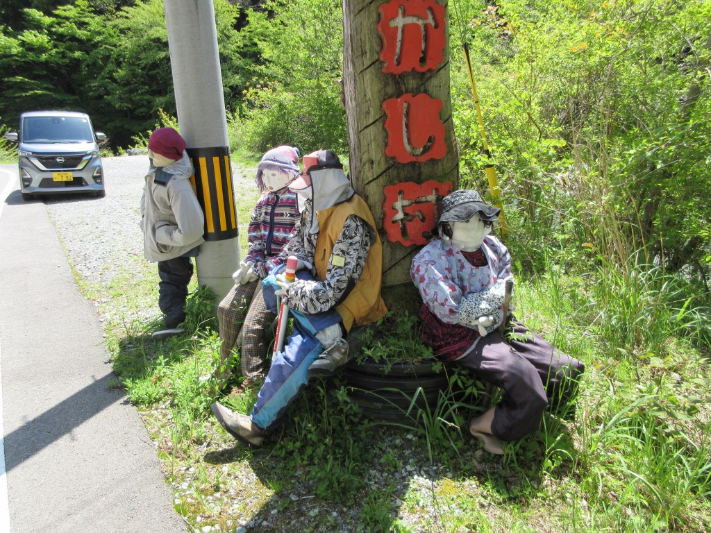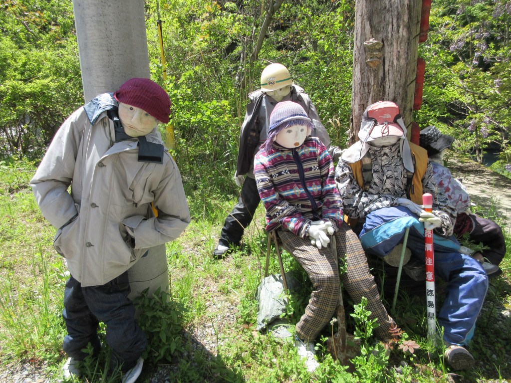 Und nun rein ins Tal nach Nagoro Village of Scarecrow. „Vogelscheuchendorf“) Ca. 1 Stunde Fahrt durch Wälder und kleine Strassen. Durch den starken Regen auch teilweise fast unpassierbar. Zum Glück kein Verkehr. Keinen einzigen Getränkeautomat (じどうはんばいき jidohanbaiki ) auf der Strecke. Sonst gibt es die überall! Auch im Dorf nicht. Es leben noch 17 Personen im Dorf.