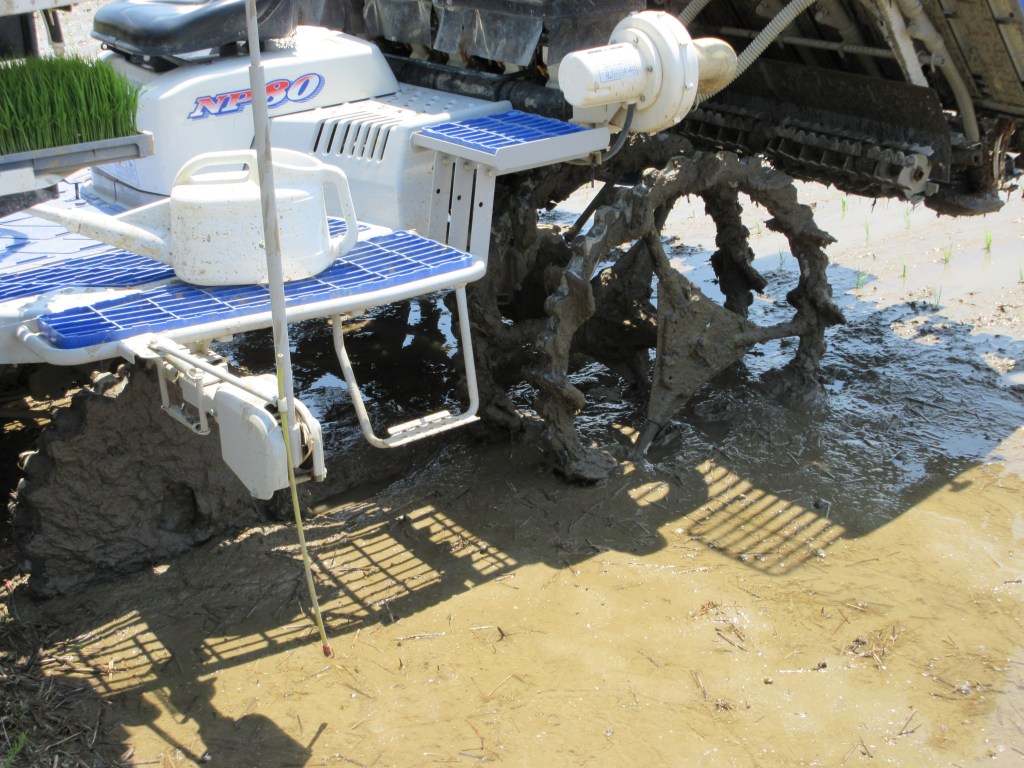 Junge Reispflanzen werden in speziellen Saatbeeten bis zu einer Größe von 15 bis 25 Zentimetern herangezogen. Das bereits mit Wasser geflutete Reisfeld wird gepflügt, um den Boden mit dem Wasser zu mischen. Anschließend werden die vorgezogenen Sämlinge maschinell eingepflanzt. Bei kleinen Feldern von Hand. Bei der Handarbeit wird Unkraut aussortiert, sodass die Reispflanzen keine Konkurrenz um sich haben und die Ernte rein ausfällt.