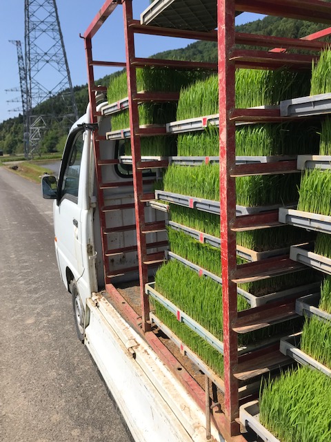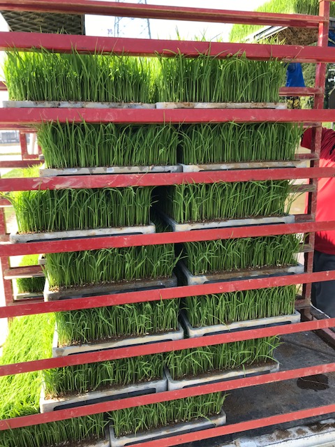 So werden die Reispflanzen transportiert für die Reispflanzmaschine