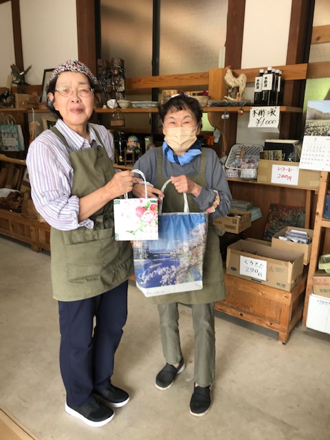 Haben mir ihre selbstgebastelten Papiertaschen geschenkt.
