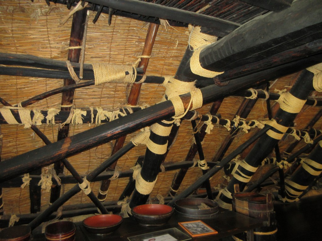 Diese Häuser haben keine Nägel. Balken sind mit Strohseilen zusammengebunden.