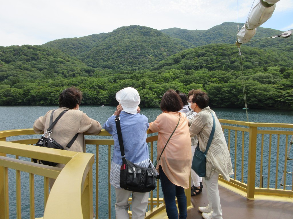 Ein schöner Tag. Mit dem Bus über die Passstrasse (rauf und runter) bis zum See. Schiff Ahoi. Ein Touristenkahn übervoll. Ich habe mir erlaubt erste Klasse zu nehmen. Die 6 Damen auf dem Ladiesausflug waren lustig. Sie waren „enchanter“ über mein Japanisch. Ohh jeeee ohh jeee. Eine Japanerin würde nie etwas negatives sagen.