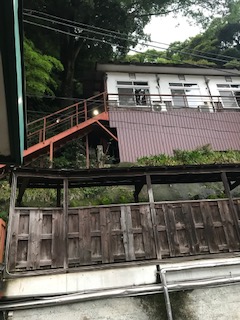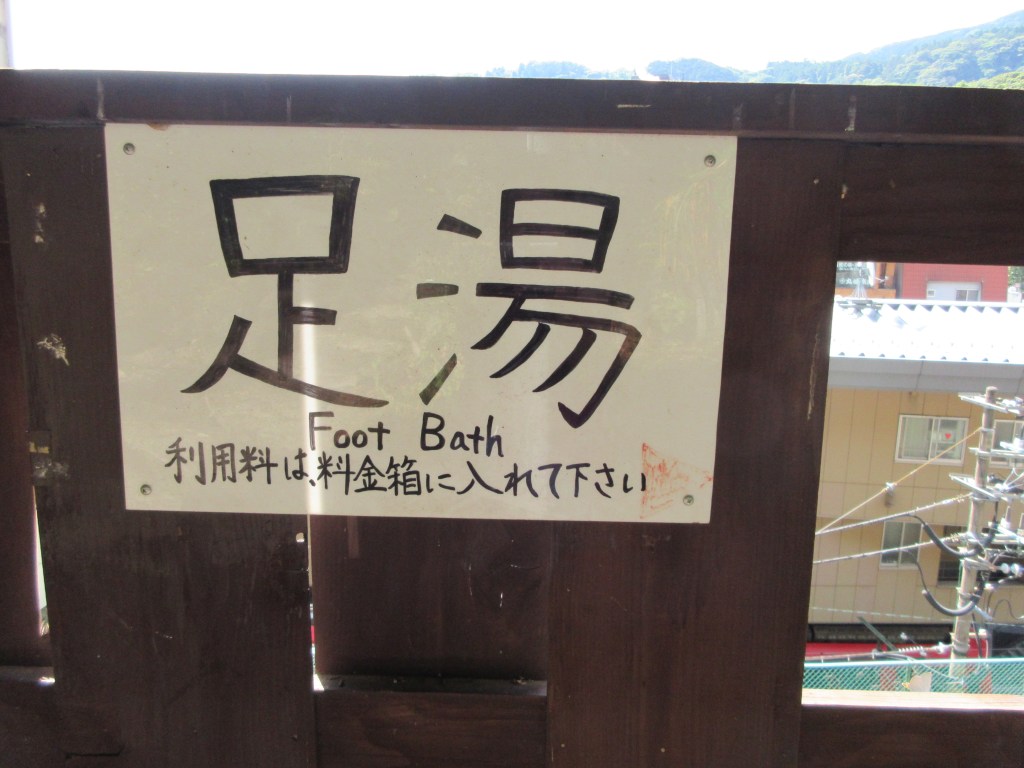 Einstieg ins Hotel. Es ist ein altes japanisches Haus mit Anbau. Sehr in die Jahre gekommen. Die Besitzerin mit Name Murakami ist charmant und hilfsbereit. Nur japanisch – doch langsam geht es mit dem verständigen. Es gibt ein schönes Onsen im obersten Stockwerk. Nur die Quelle ist mir einfach zu heiss. Das heisse Wasser fürs Hotel kommt alles von der Quelle.