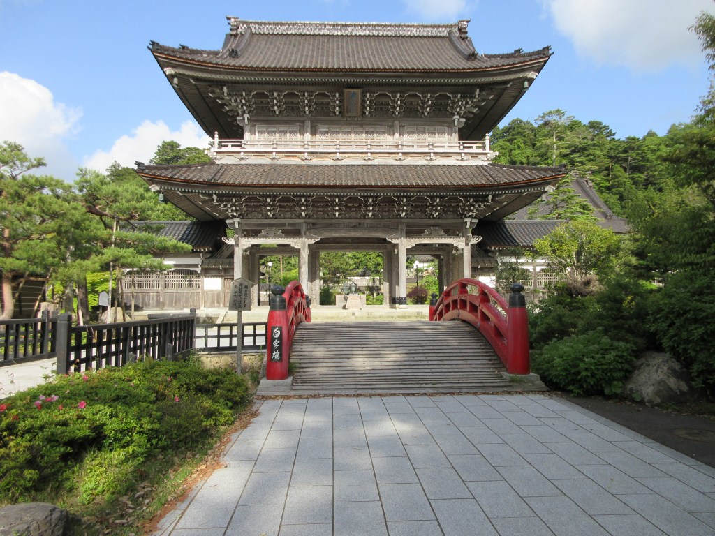 Die bekannte viel fotografierte rote Brücke über dem Daiya-gawa steht an dem geheiligten Ort, an dem Shodo Shonin den Daiya-Fluss auf dem Rücken von zwei riesigen Schlangen überquert haben soll. Bei der heutigen Konstruktion handelt es sich um einen Nachbau von 1907, da das Original aus dem 17. Jh. bei einer Flut weggespült wurde. Die Brücke ist nicht begehbar. Die rote Brücke wurde öfters von westlichen Künstlern gemalt.