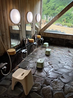 Wie auch beim Sento wäscht man sich, bevor man eintaucht, in ein Onsenbecken gründlich. Dann rein ins heisse Wasser. Zur Entspannung, wo der strikte Verhaltenskodex, der das soziale Leben regelt, gelockert ist und die Hierarchien eingeebnet sind. Im Onsen sind alle gleichberechtigt. Es ist selten, dass Firmengruppen ein Onsen besuchen, viel mehr sind es Freunde, Familien und Pärchen, die zusammen ein Onsen besuchen. Es wird viel Wert auf Ruhe gelegt.