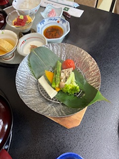 Und nun zum Essen. Köstlich sowohl das Frühstück wie auch das Abendessen. Da die Onsen öfter abgelegen sind ist das Essen im Preis inbegriffen.